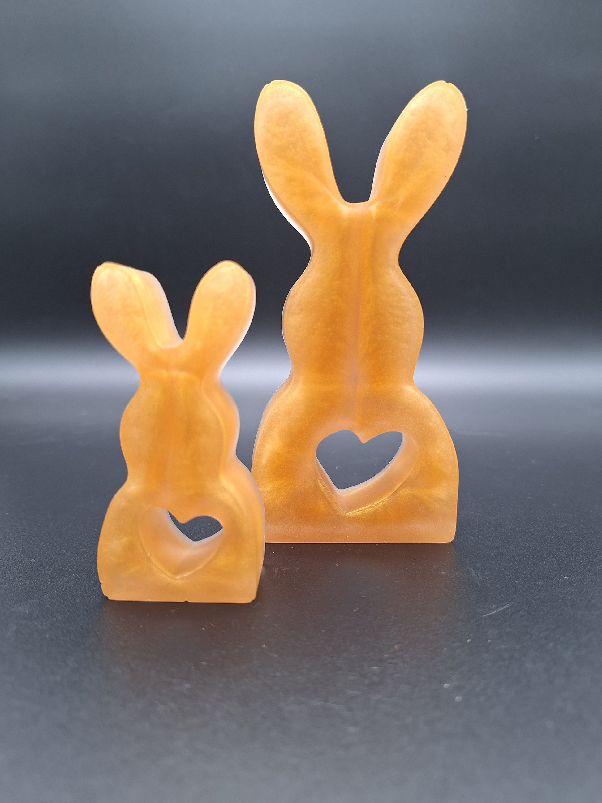 Dieses liebevoll handgefertigte Osterhasen-Set aus Epoxidharz bringt eine warme und edle Stimmung in deine Frühlings- und Osterdekoration. Die beiden Hasen überzeugen durch ihre schlichte, moderne Form und den sanft schimmernden Goldton, der je nach Lichteinfall wunderschön zur Geltung kommt.